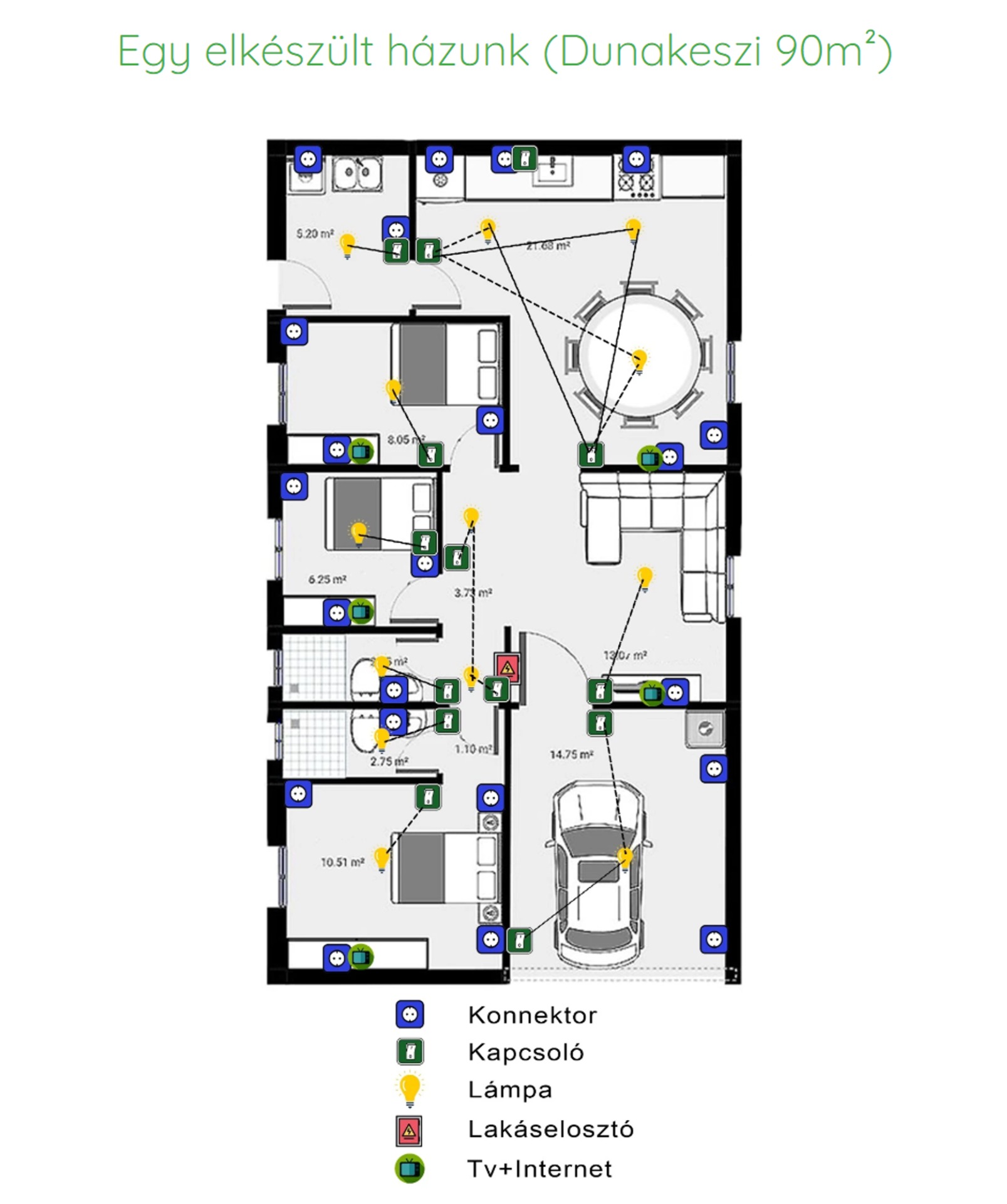 Dunakeszi egy 90m² -es ház teljes villamos hálózat kialakitására kértek fel minket